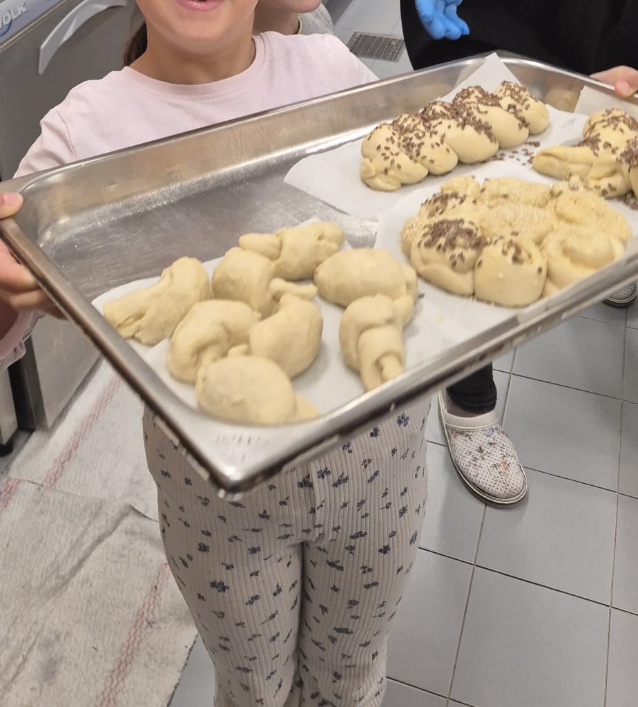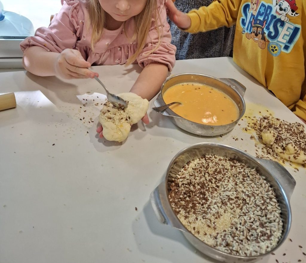 Djeca svih skupina, od jaslica do vrtićanaca, zajedno sa svojim tetama, pretvorila su se u male pekare. S pekarskim kapicama na glavi veselo su mijesili tijesto, oblikovali krušćiće, pletenice i bublice, te ih posipali raznim sjemenkama kao pravi profesionalci.
